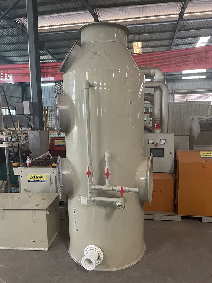 The acid mist waste gas is introduced into the purification tower through the air duct. After passing through the packing layer, the waste gas and the sodium hydroxide absorption liquid are fully contacted and absorbed and neutralized. After being purified, the acid mist waste gas is dehydrated and defogged by the defogger plate and then discharged into the atmosphere by the fan. The absorption liquid is pressurized by the water pump at the bottom of the tower and sprayed down at the top of the tower, and finally flows back to the bottom of the tower for recycling. The purified acid mist waste gas meets the emission requirements of Guangdong Provincial Local Emission Standards, which are lower than the national emission standards.